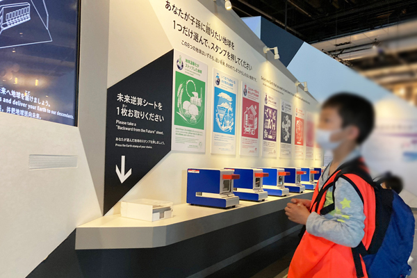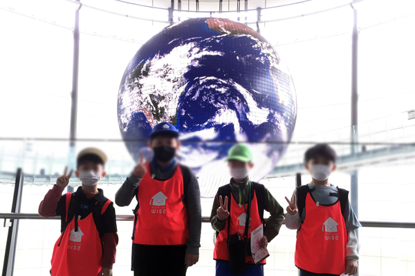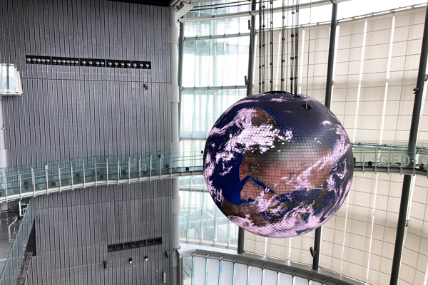 まず館内に入ると、地球が映し出された大きなディスプレイがあり「わぁー!」と大きな歓声があがりました。