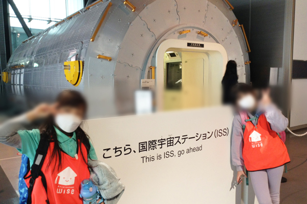 国際宇宙ステーションの展示には、宇宙での生活に必要な設備を再現した宇宙居住棟があり、「この中でどうやって寝ているんだろう?」「どんな食事をしているのかな?」と、興味津々な様子で見学していました。