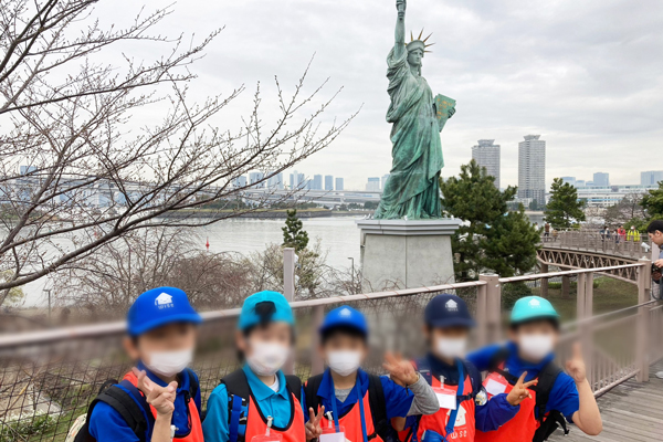 日本科学未来館の見学を終えた後は、外の芝生で昼食タイムです。