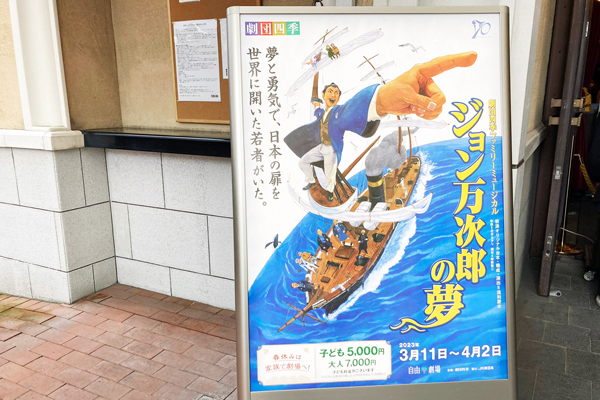 今回のトリップでは、日本人ではじめてアメリカに渡ったといわれている中浜万次郎の半生を描いたミュージカル、「ジョン万次郎の夢」を観劇しました。