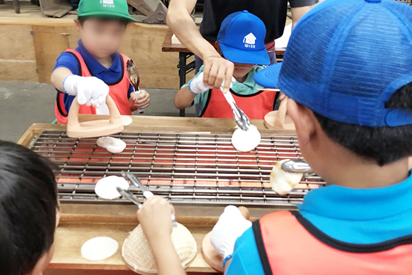 『食育~郷土料理を知ろう~』では、おせんべい焼き作業を実際に体験してもらいました。