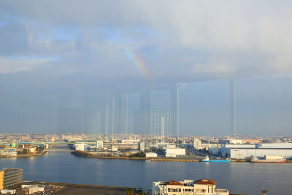 展望室に入ると、偶然空に虹がかかっていて、子どもたちは大喜び!