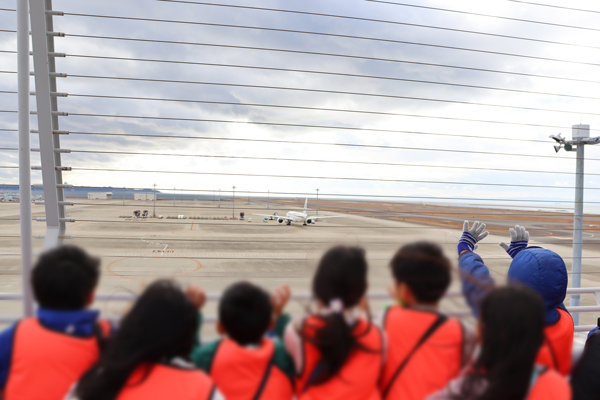 スカイデッキでは飛行機が発着する様子も見学することができ、大空へ飛び立っていく飛行機に大きく手を振っていました。