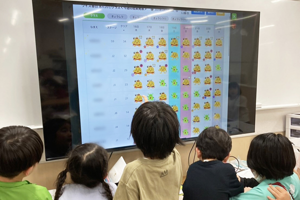 新しく大きいモニターを設置したため、より言葉や画像が鮮明に確認できるようになったおかげか、ランキングを映すときなどには『私が1番だった!』『●●ちゃんすごい!』など、より一層クラスが盛り上がるようになりました!