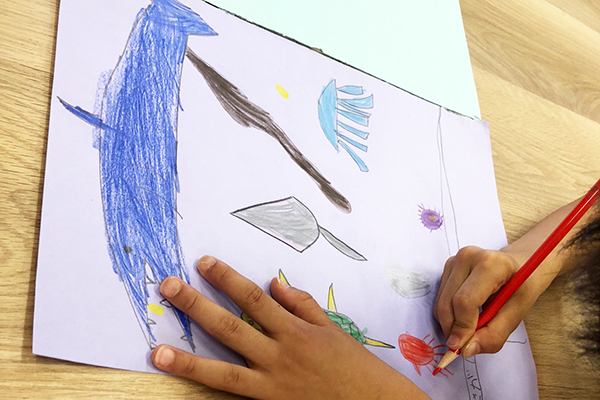 イベントに向けて、小学生の子どもたちが掲示物を作成しています。