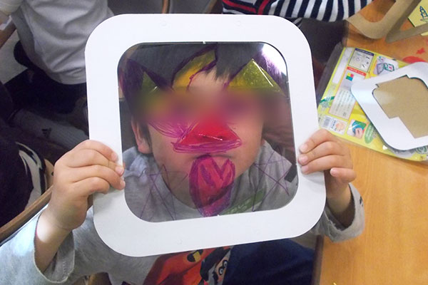 今回はセロファンと色紙を使ったお面作りに挑戦しました。