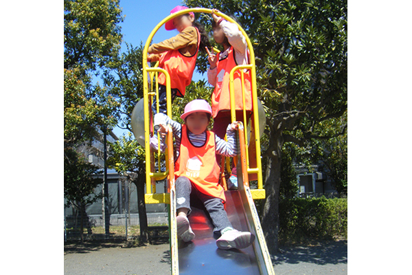 ブランコや滑り台で遊んだり、元気いっぱいに走り回ったりと、思いっきり外で体を動かします。
