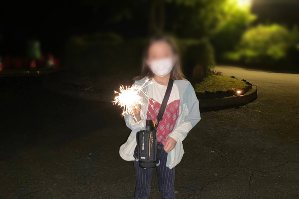 楽しいキャンプの夜を彩る花火を、夢中で観賞していました。