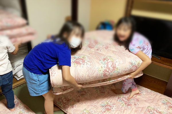 空気を入れる作業は子どもたちにも手伝ってもらいました。
