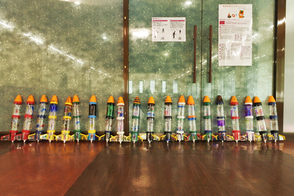 メンバーの名前を書いたり、好きなものを描いたりと、世界にたったひとつの特別なペットボトルロケットが完成。