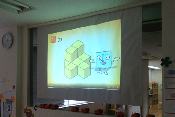 今回は、立方体が積みあがっている姿から、いくつの立方体で出来ている形なのか当てっこをしました。